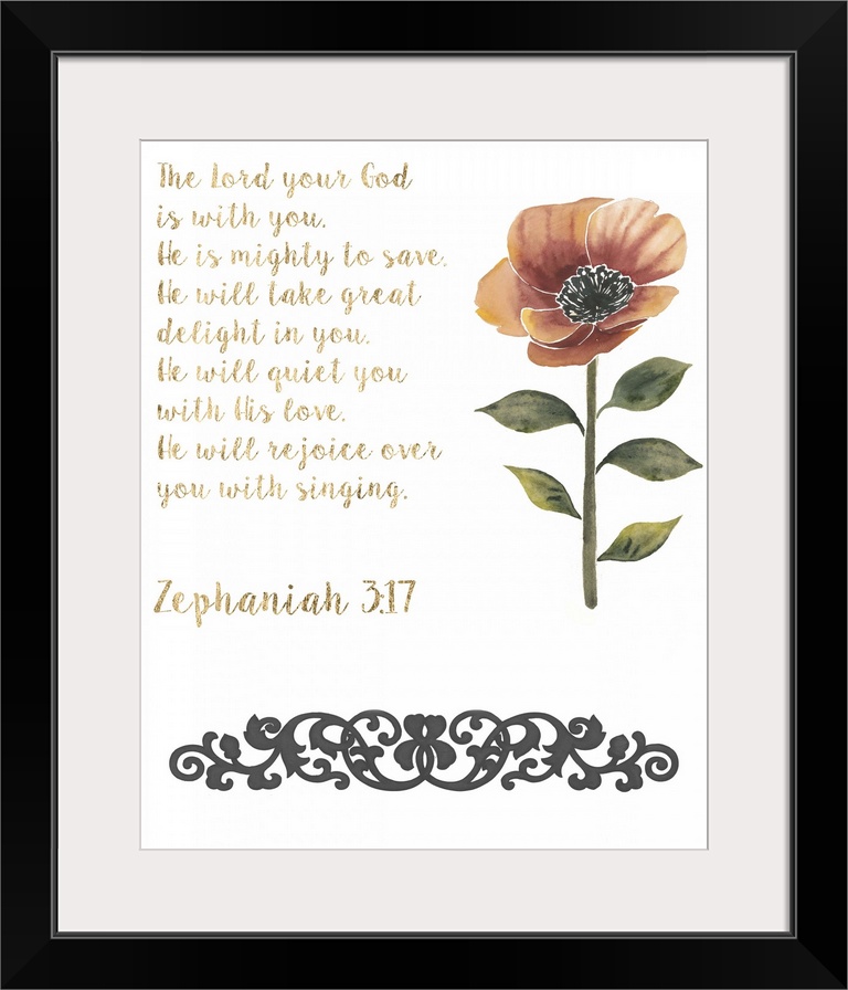 <p>A handwritten Bible verse with a red poppy and a vintage flourish.</p>