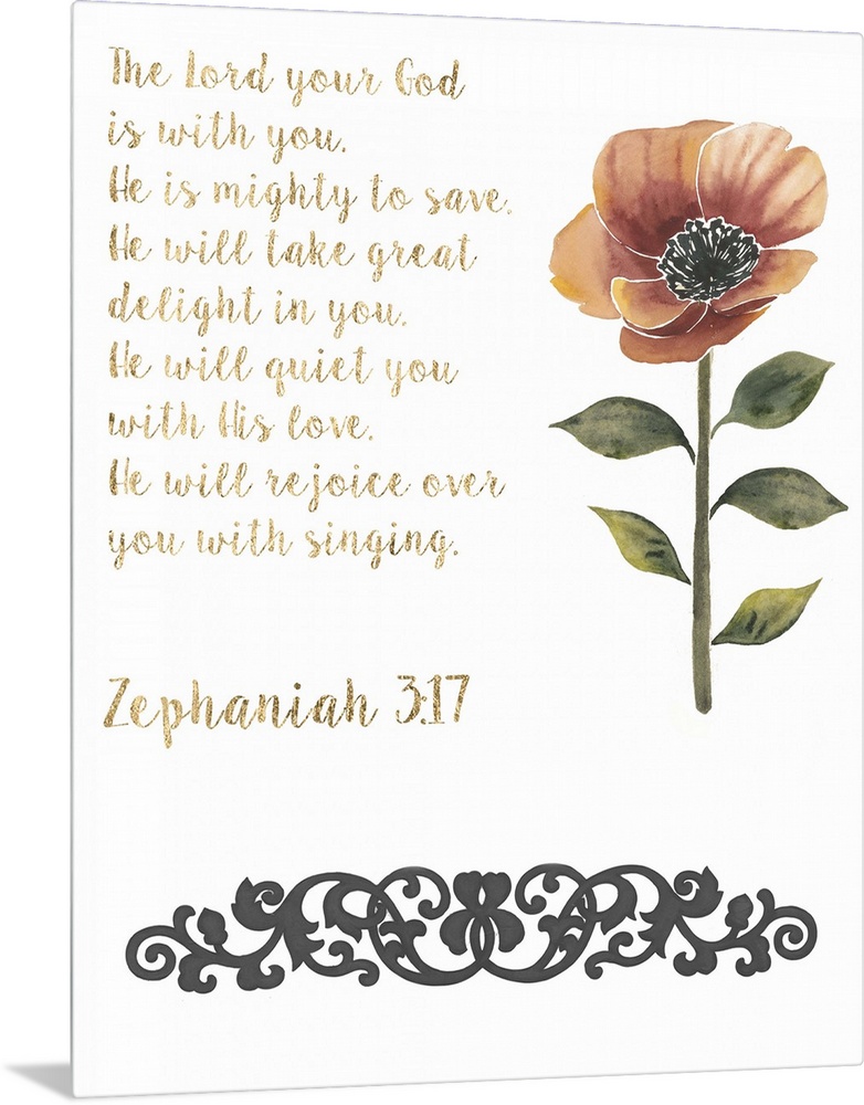 <p>A handwritten Bible verse with a red poppy and a vintage flourish.</p>