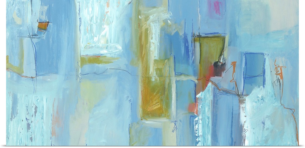 <p>Contemporary abstract painting using tones of blue in vertical strokes.</p>