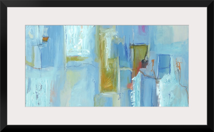 <p>Contemporary abstract painting using tones of blue in vertical strokes.</p>