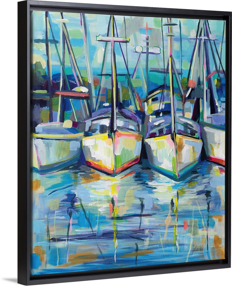 Art Coastal Beach House Décor Blue Wall Art Aqua Contemporary Art Harbor Painting Transportation Boat Jeanette Vertentes