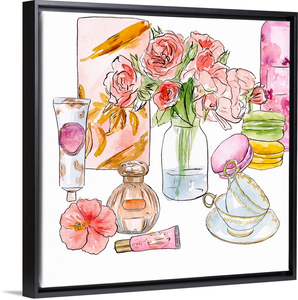 Art Glam Decorative Art Fashion And Beauty Cosmetics Florals Painting Pink Wall Art Still Life Melissa Wang Watercolor