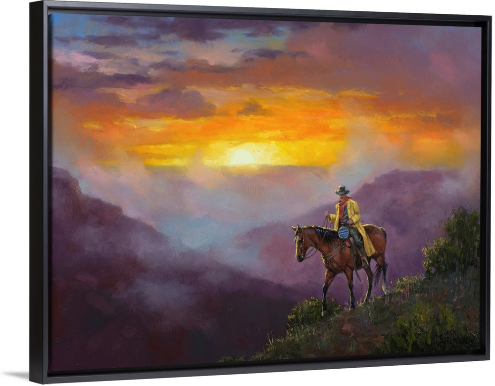 <p>Jack Sorenson’s art celebrates the Old West lifestyle and cowboy culture. He came of age on a dude ranch on the rim of Palo Duro Canyon. He worked as a stagecoach driver, horse trainer, and performance gunfighter before turning his attention to art. Sorenson has been a naturally gifted artist since he was a child and has been voted into the prestigious Cowboy Artists of America group. Sorenson’s paintings often feature horses and scenic landscapes of the Wild West.</p>