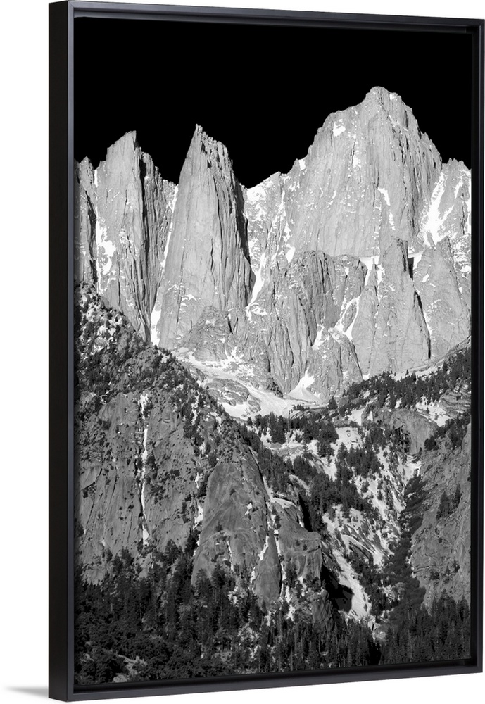 <p>Black and white landscape photograph of Mount Whitney highlighting its rocky textures.</p>