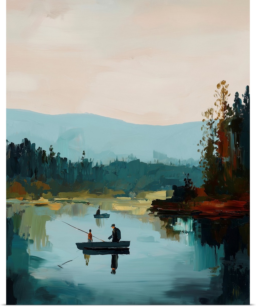 Art Blue Wall Art Contemporary Art Paula Freeman Landscapes Lake Mountains Painting Sports Fishing Transportation Boat