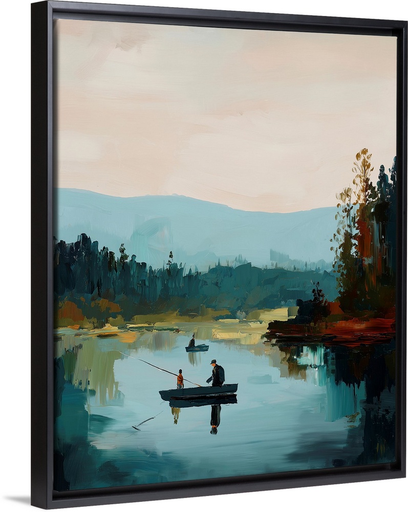 Art Blue Wall Art Contemporary Art Paula Freeman Landscapes Lake Mountains Painting Sports Fishing Transportation Boat