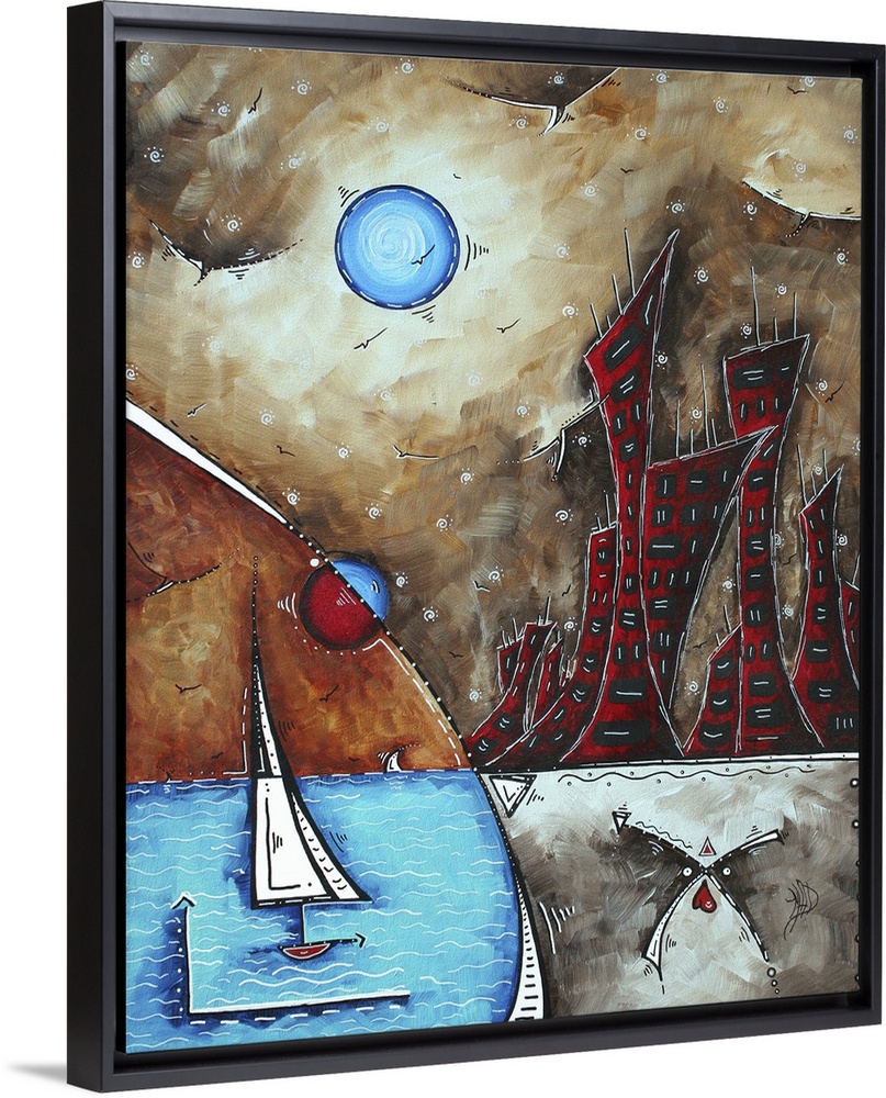 <p>This original coastal cityscape painting was created by Megan Aroon Duncanson (MADART). She has a distinct flair for modern/contemporary art. Her style and use of color are unmistakable. Bright, rich color and abstract composition draw the viewer in for a long-lasting enriching experience.</p>