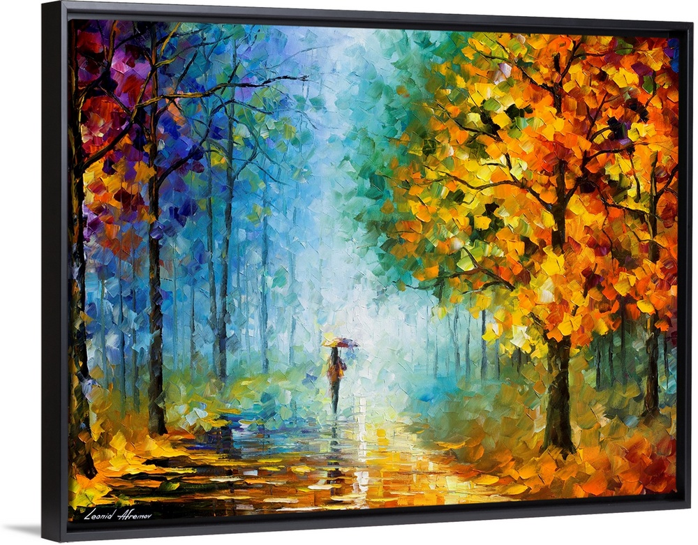 <p>Leonid Afremov was an extraordinarily prolific contemporary artist with a style all his own. His palette knife paintings depict people, cities, seascapes, gardens and animals in bold colors. Afremov’s love for brilliant colors may be cathartic, an affirmation that he had risen above the struggles and drudgery that plagued him early in his career in Russia and Israel. Afremov’s intricate and timeless paintings make spectacular canvas prints that will add a touch of sophistication and charm to any room.</p>