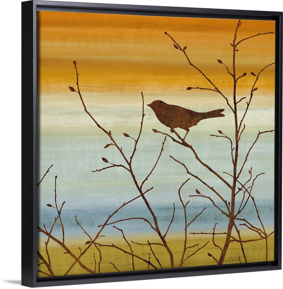 <p>Square decor with silhouettes of a bird and Winter branches on a warm and colorful background.</p>