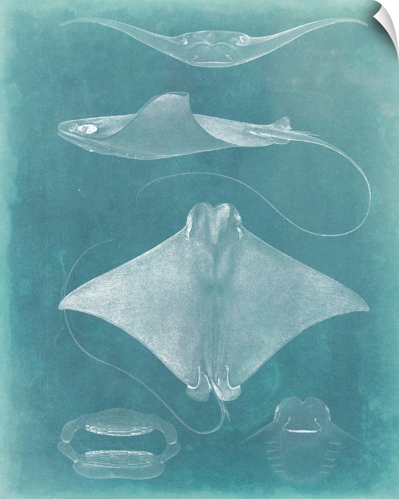 Art Beach House Décor Blue Wall Art Decorative Art Drawing Vision Studio Wildlife Marine Life Ray