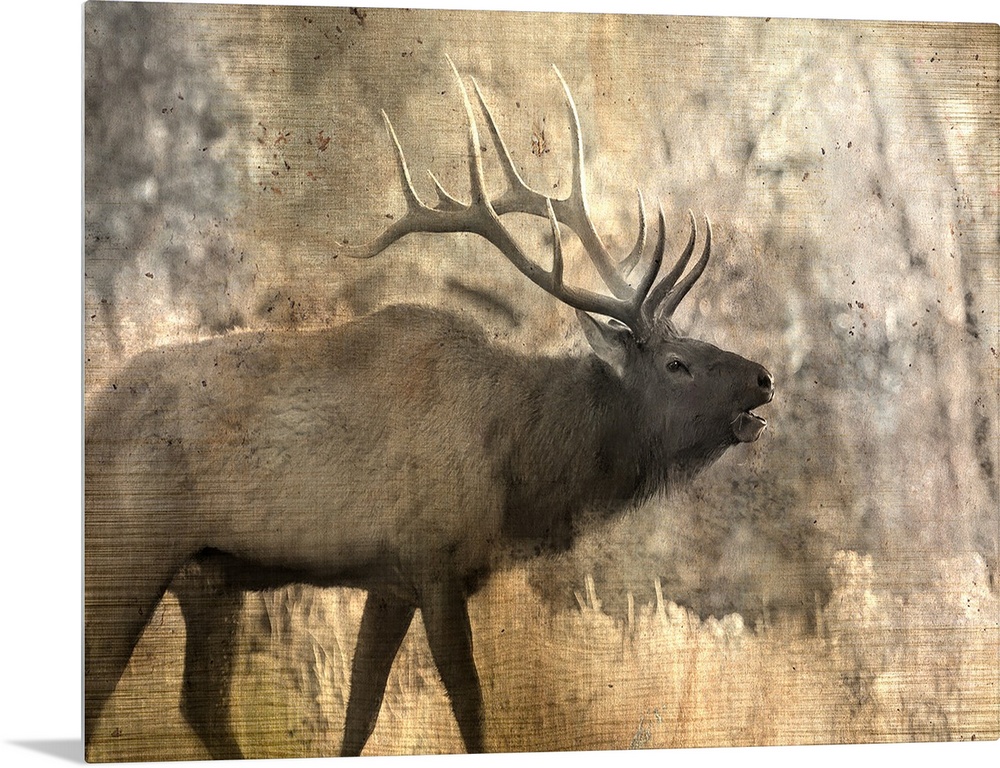 <p>An elk walking through the woods in the morning.</p>