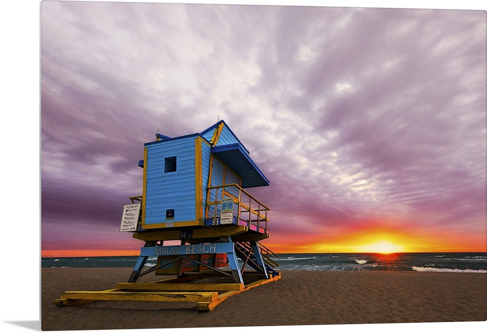<p>Miami Beach's 14th Street Lifeguard station faces sunrise over the Atlantic Ocean.</p>