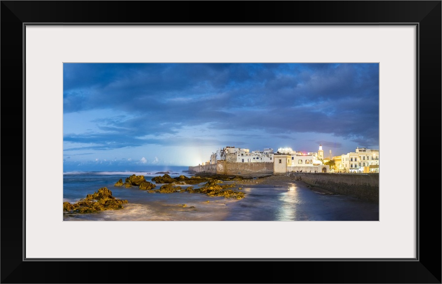 <p>Morocco, Marrakesh-Safi (Marrakesh-Tensift-El Haouz) region, Essaouira. Medina (old town) at dusk, protected by 18th-century seafront ramparts, Skala de la Kasbah.</p>