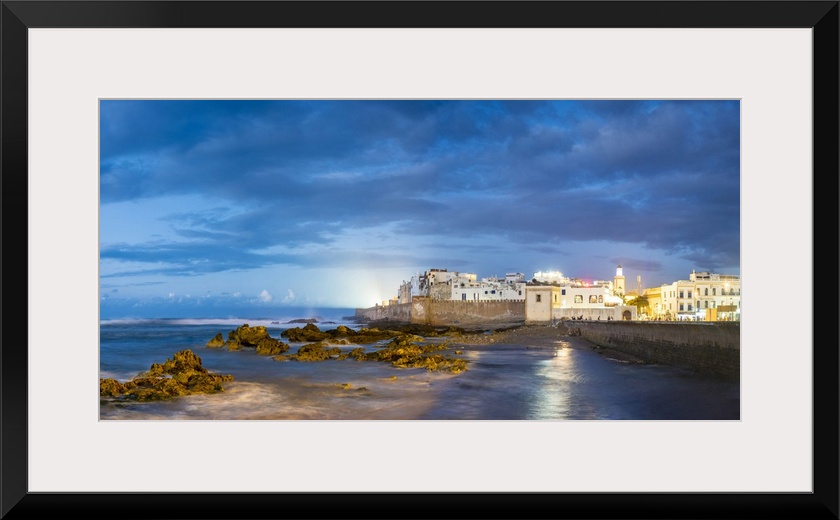 <p>Morocco, Marrakesh-Safi (Marrakesh-Tensift-El Haouz) region, Essaouira. Medina (old town) at dusk, protected by 18th-century seafront ramparts, Skala de la Kasbah.</p>