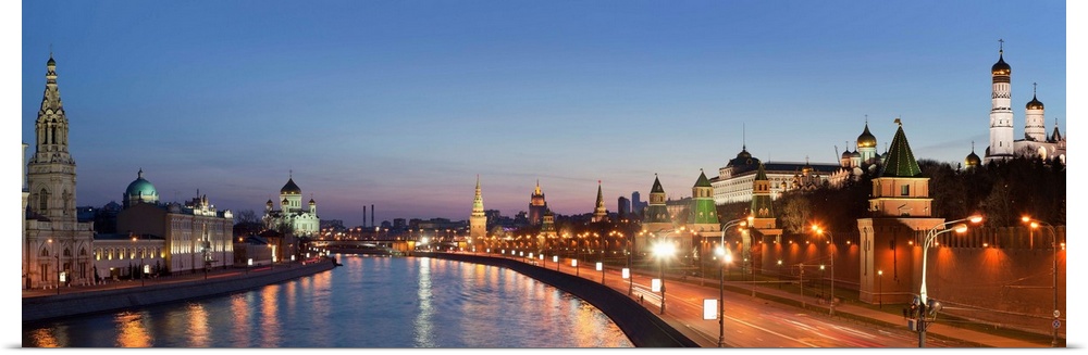 <p>Russia, Moscow, Moscow River, Cityscape with Cathedral of Christ the Saviour and Kremlin at dusk</p>