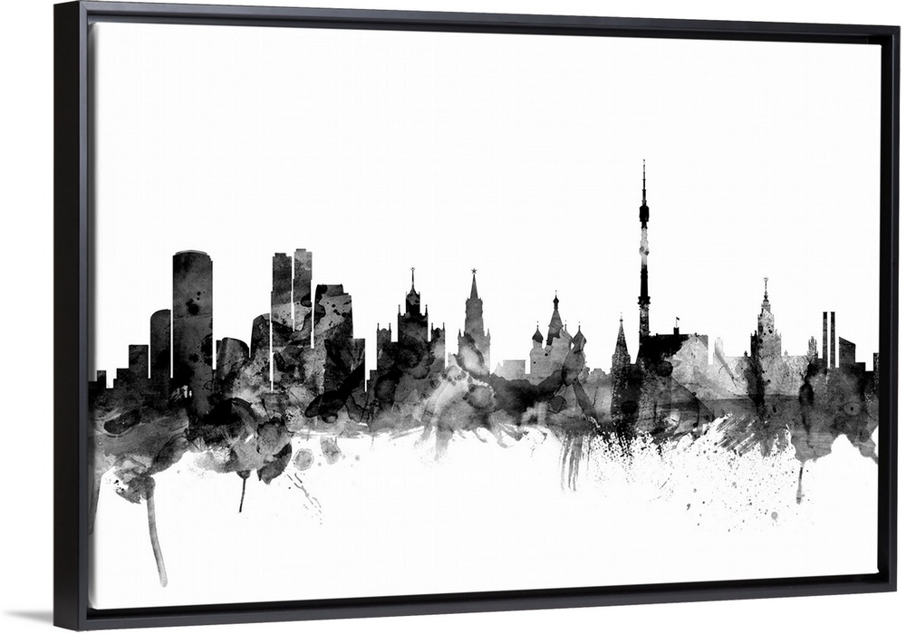 <p>Smokey dark watercolor silhouette of the Moscow city skyline.</p>