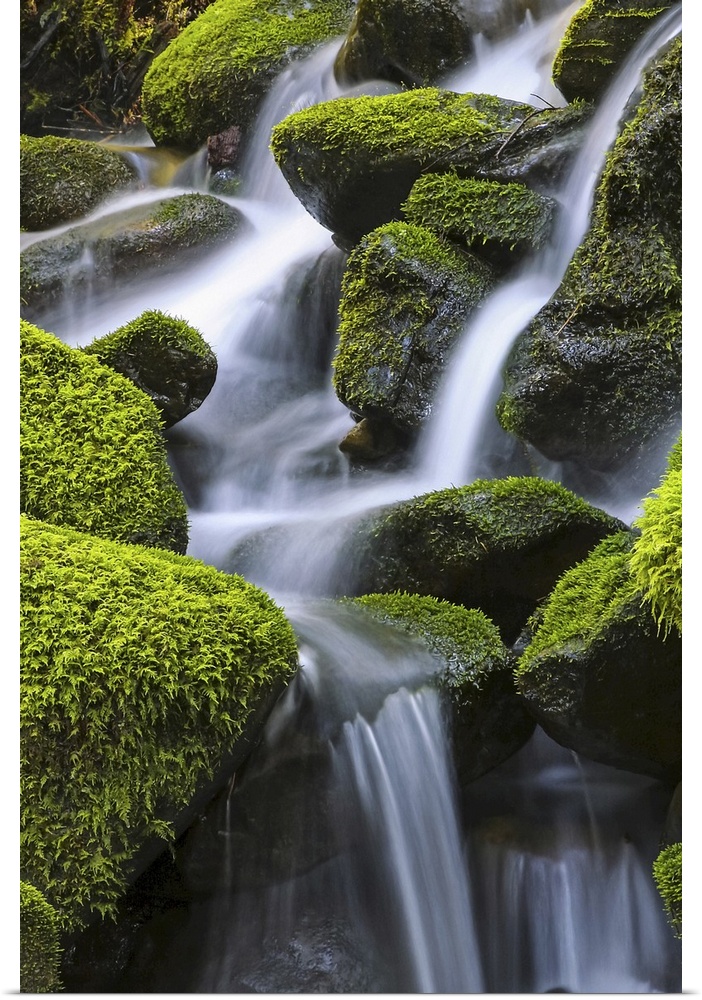 <p>Moss-covered rocks with cascading water, Denver, Colorado, united states of America.</p>