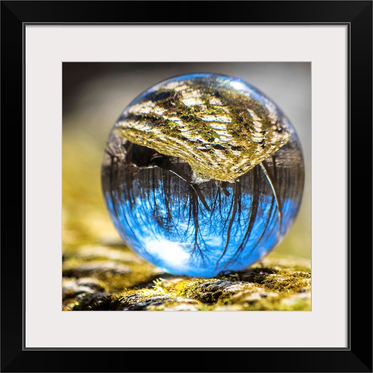 <p>Crystal ball with the reflection of a mossy tree</p>