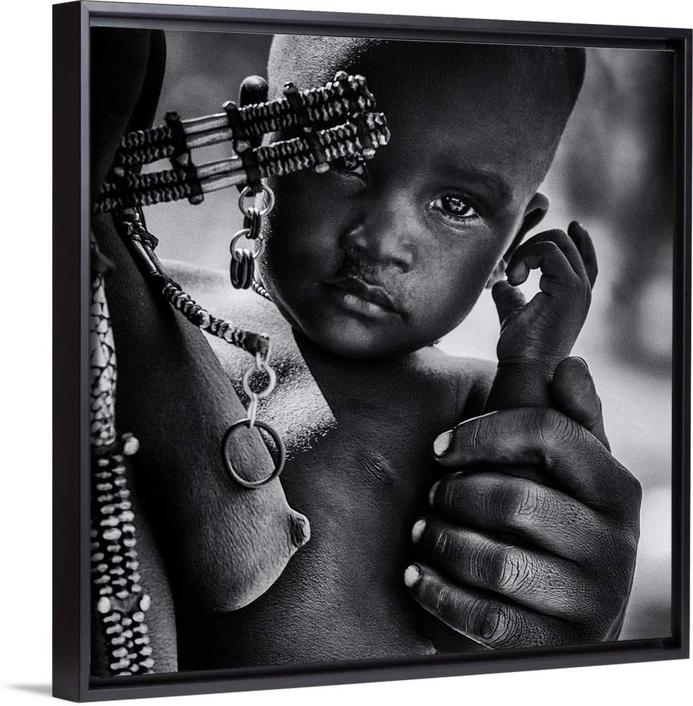 <p>A young Himba child stays close to their mother, Namibia.</p>