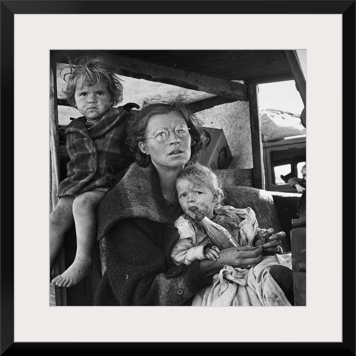 <p>An impoverished family from Oklahoma arriving at a migrant workers' camp in Tulelake, Siskiyou County, California. Photograph by Dorothea Lange, September 1939.</p>