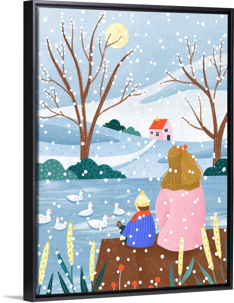 Art Blue Wall Art Contemporary Art Winter Graphic Art Landscapes Snowscapes Bea Muller People
