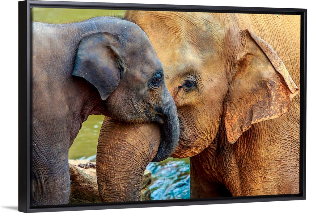 <p>Cuddling elephant and baby elephant in the river. Sri Lanka.</p>