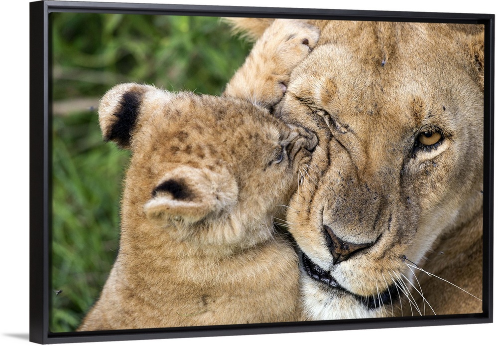 <p>Cute photograph of a lion cub biting and playing with its mother.</p>