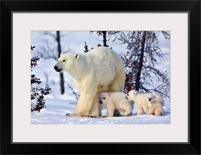 <p>Mother polar bear with three cubs on the tundra, Wapusk National Park, Manitoba, Canada.</p>