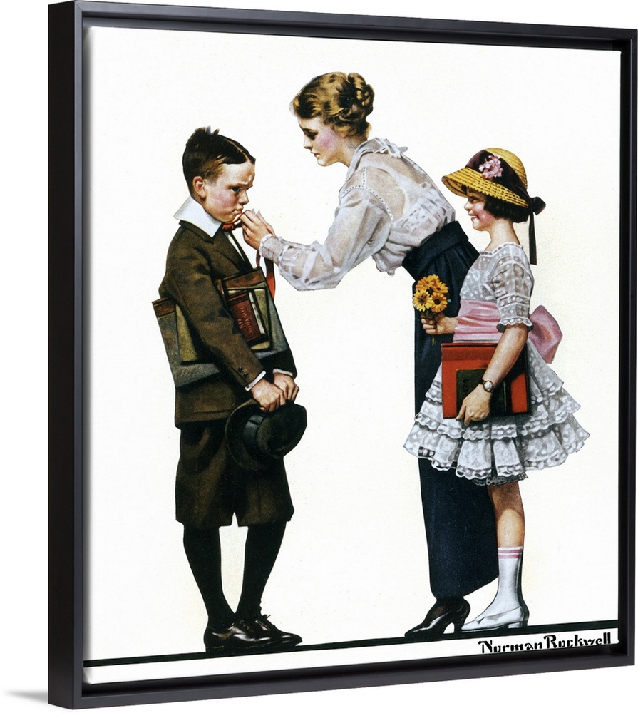 <p>In Rockwell's world children disobeyed rules, adolescent girls grappled with social pressures, boys struggled with their evolution into manhood, and, in his most powerful paintings, society confronted issues of race. Many of his images of youth intended to evoke nostalgia, depict real family relationships, and memorialize the everyday. Approved by the Norman Rockwell Family Agency</p>