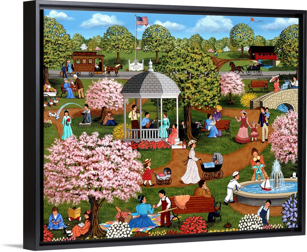 <p>Sheila Lee's philosophy to depict characters enjoying a simpler time, with a healthy dose of humor. Bright colors and intricate composition tells stories within the story.</p>