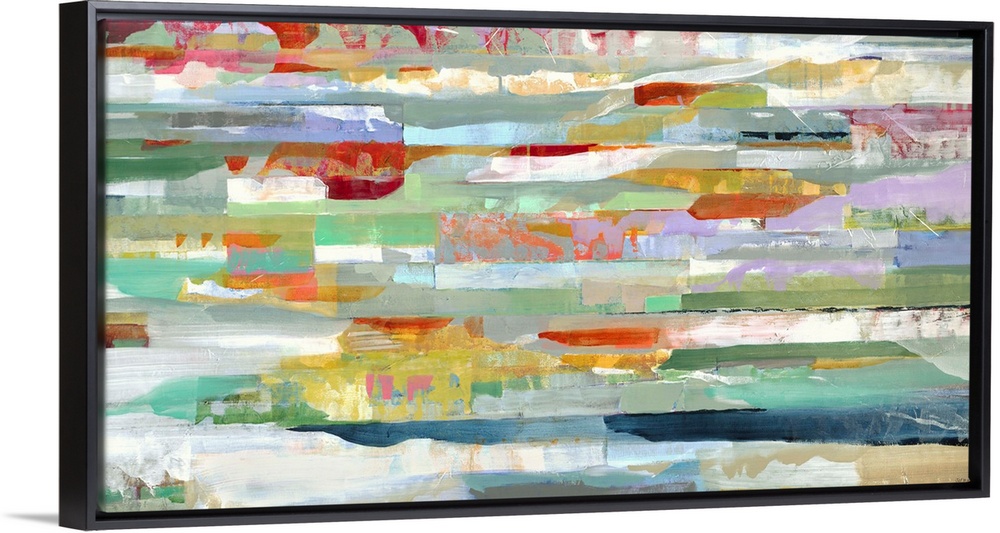 <p>A contemporary abstract painting of multi-colored horizontal lines.</p>