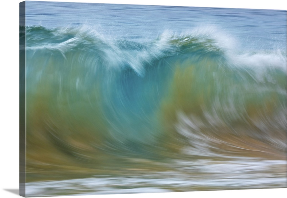 <p>Motion blur of blue rolling waves carrying golden sand at the shore; Kihei, Maui, Hawaii, United States of America.</p>