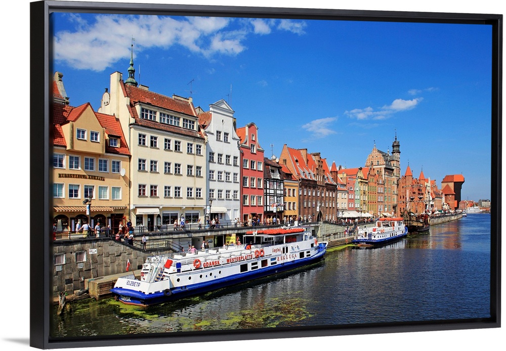 <p>Motlawa Riverbank with the Old town of Gdansk, Gdansk, Pomerania, Poland</p>