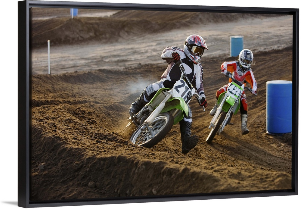 <p>Motorcross riders racing on track</p>