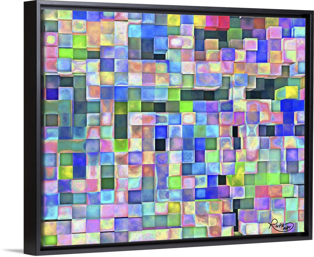 <p>Square abstract art that is made up of squares filled with color creating a tile pattern</p>