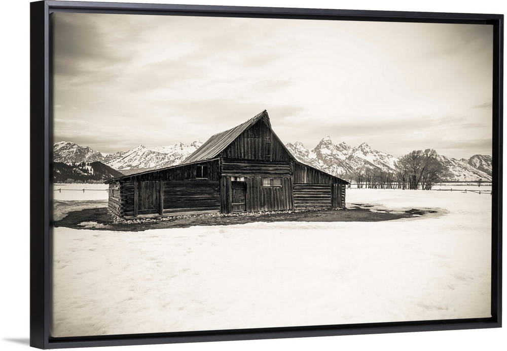 <p>Moulton Barn and Tetons in winter, Grand Teton National Park, Wyoming USA</p>