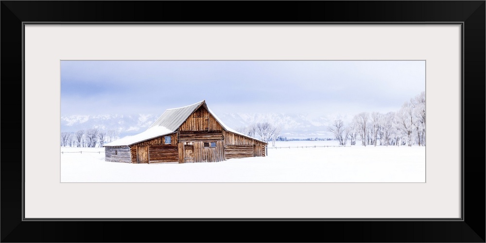 <p>Moulton Barn, Mormon Row in winter with lots of snow, Grand Teton National Park, Wyoming, USA</p>