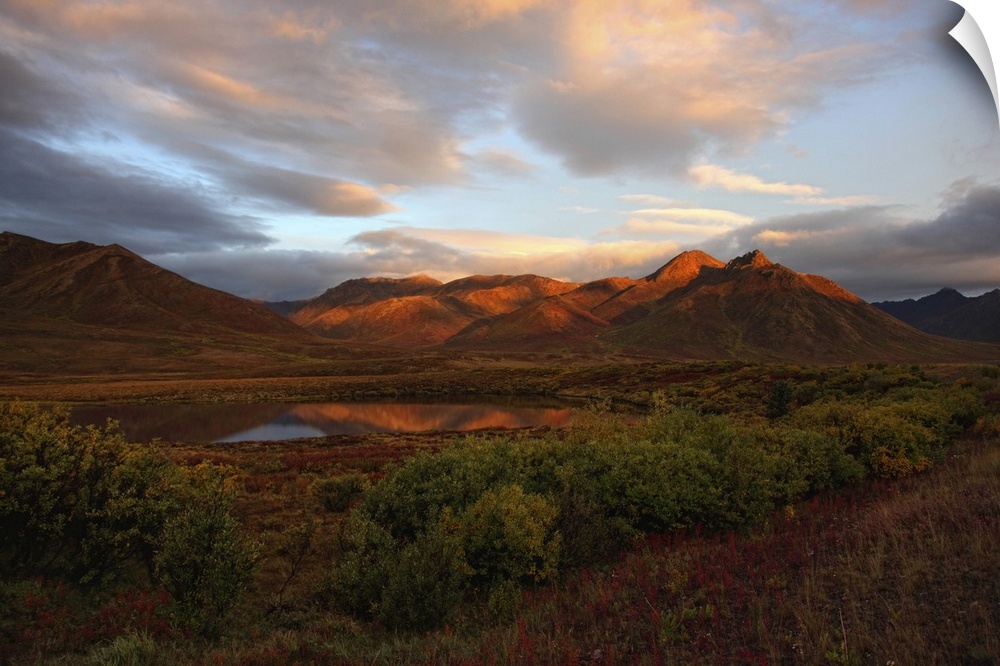 <p>Morning Sunlight Lighting Up Mount Adney And Fall Colours Along The Dempster Highway, Yukon</p>