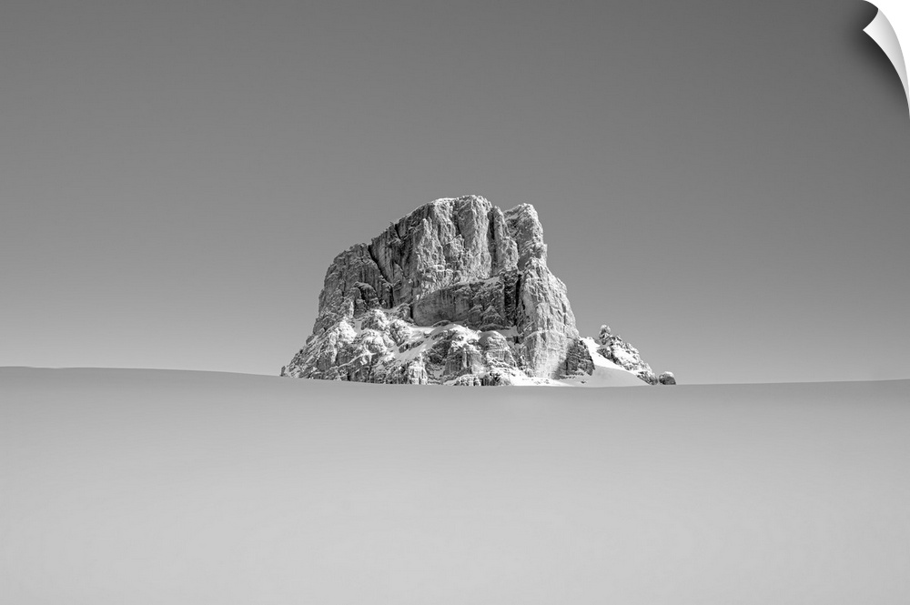 <p>Mount Averau appears during the ascent to Alpe Fedare in Dolomiti on a cold winter morning, province of Belluno, Italy.</p>