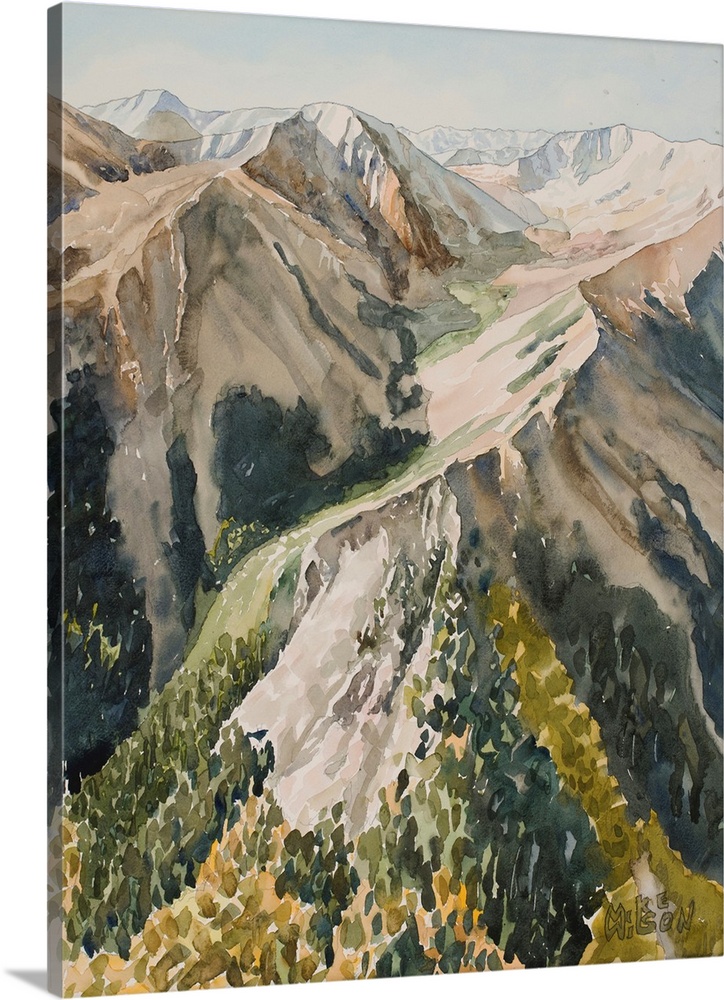 Art Contemporary Art Grey Wall Art Landscapes Mountains Painting Colorado Rocky Mountains The 14ers Collection Watercolor Mike Wilson