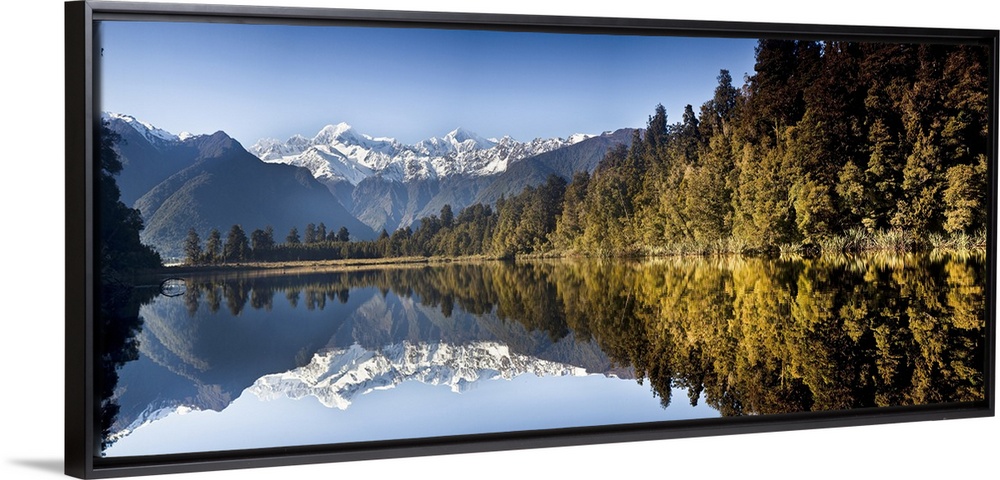 <p>Mount Cook and Mount Tasman reflected in Lake Matheson at sunset near Fox Glacier, New Zealand</p>