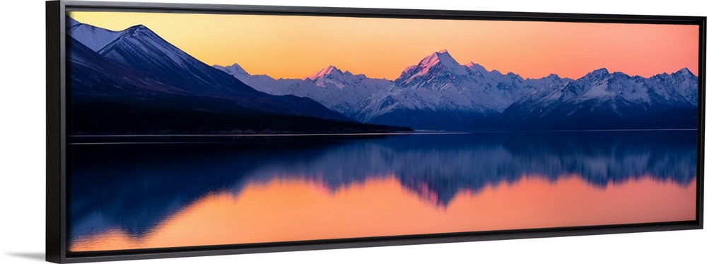 <p>Mount Cook at sunset reflecting in a lake below, New Zealand.</p>