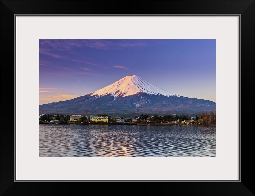 <p>Mount Fuji at sunrise as seen from Lake Kawaguchi, Yamanashi Prefecture, Japan</p>