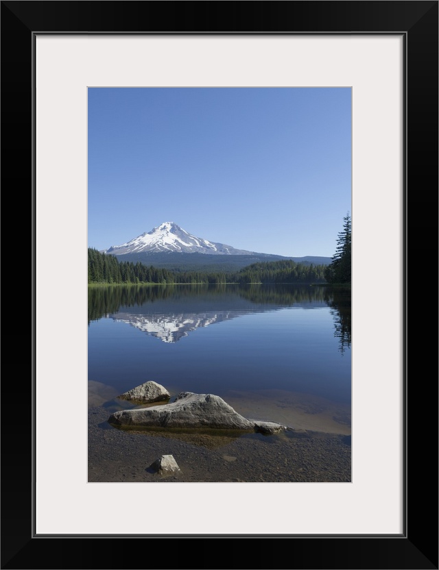 <p>Mount Hood, part of the Cascade Range, perfectly reflected in the still waters of Trillium Lake, Oregon</p>
