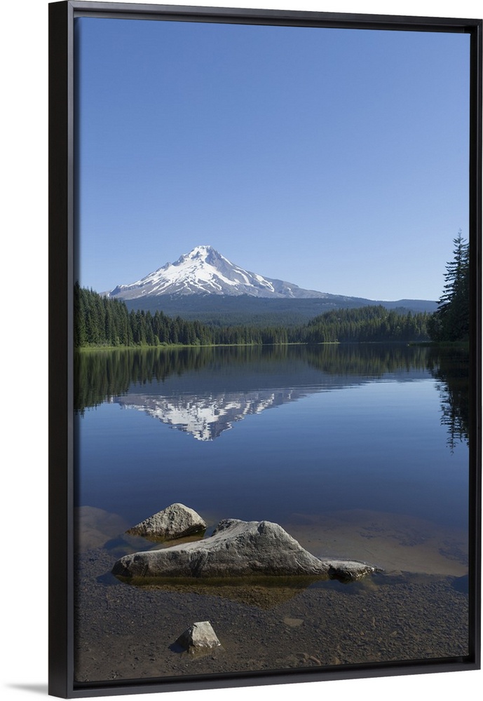 <p>Mount Hood, part of the Cascade Range, perfectly reflected in the still waters of Trillium Lake, Oregon</p>