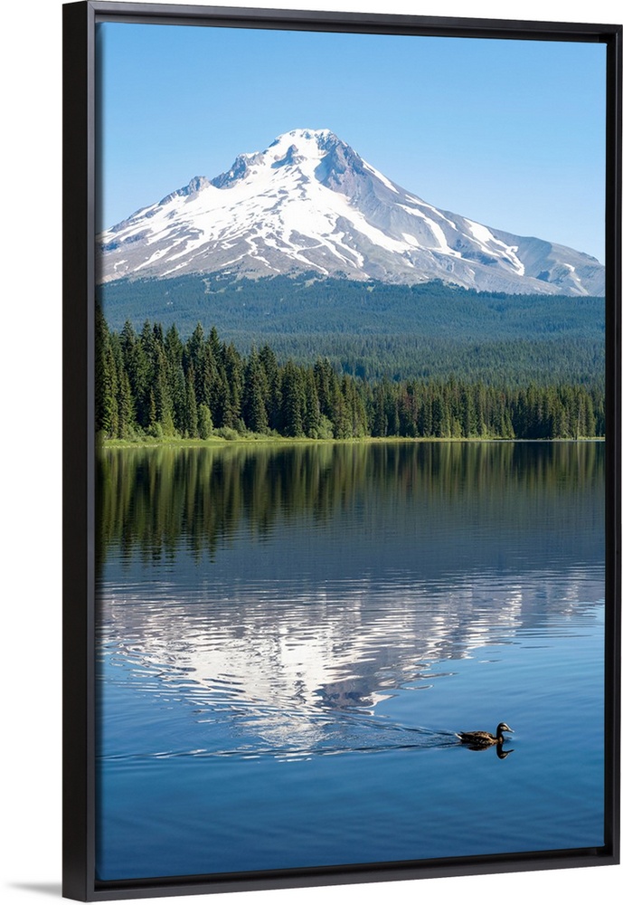 <p>Mount Hood, part of the Cascade Range, perfectly reflected in the still waters of Trillium Lake, Oregon</p>