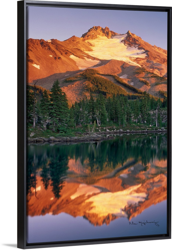 <p>Sunset on Mount Jefferson from Bays Lake in Jefferson Park, Mount Jefferson Wilderness Oregon</p>