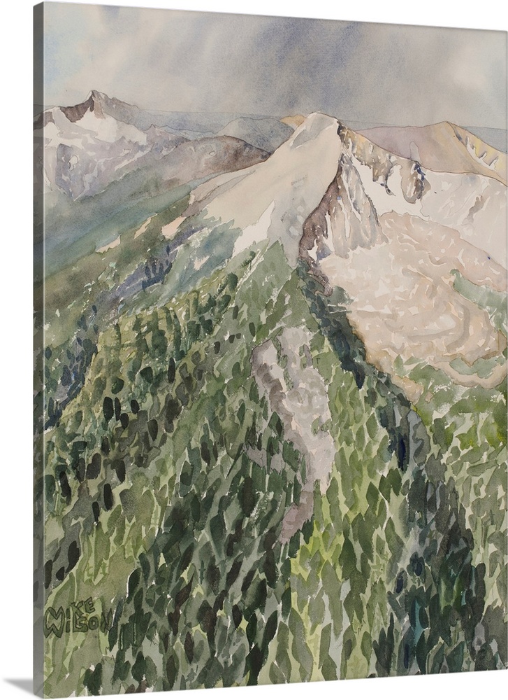 Art Contemporary Art Green Wall Art Grey Wall Art Landscapes Mountains Painting Colorado Rocky Mountains The 14ers Collection Watercolor Mike Wilson