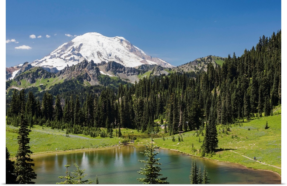 <p>A view of Mount Rainier above Tipsoo Lake, near the top of Chinook Pass on Highway 410 in the Cascade Mountains, Washington, United States of America.</p>