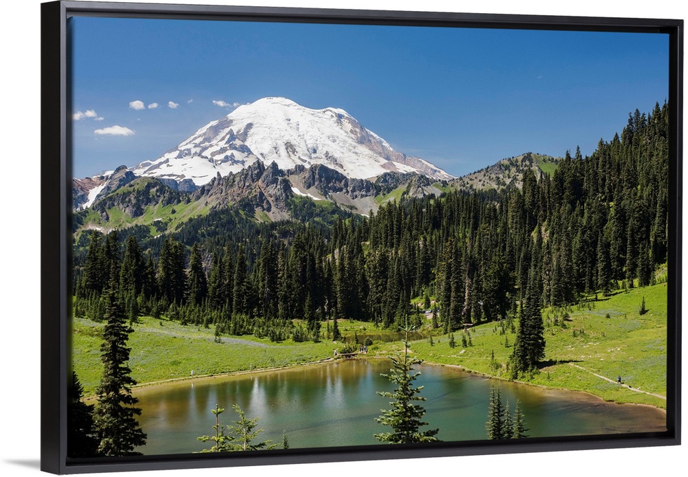 <p>A view of Mount Rainier above Tipsoo Lake, near the top of Chinook Pass on Highway 410 in the Cascade Mountains, Washington, United States of America.</p>
